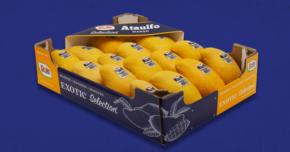 Pictures of packs and DOLE® Exotic Selection Ataulfo Mangoes